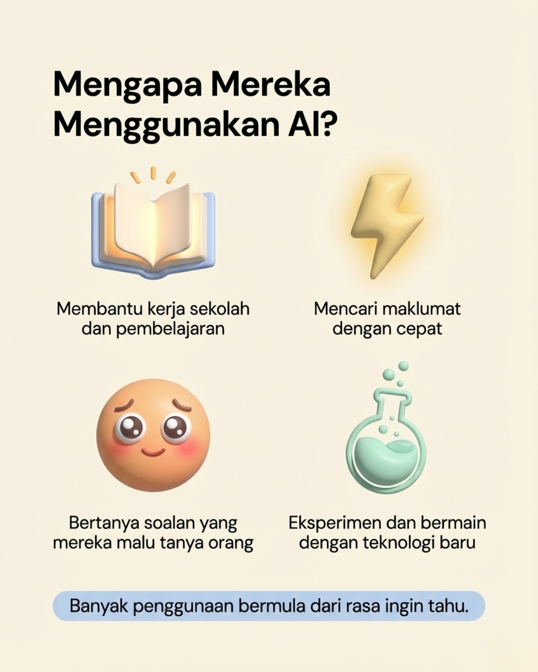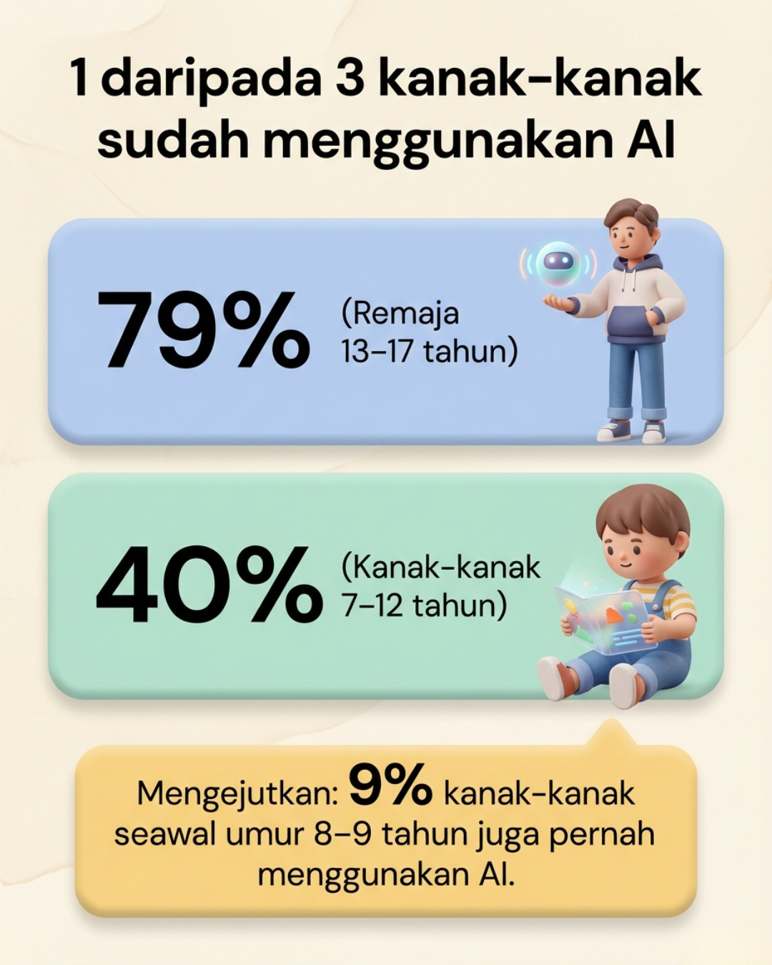 Fenomena ini menunjukkan bahawa AI bukan lagi sekadar teknologi untuk orang dewasa. Ia semakin menjadi sebahagian daripada persekitaran digital yang membentuk pengalaman pembelajaran generasi muda.